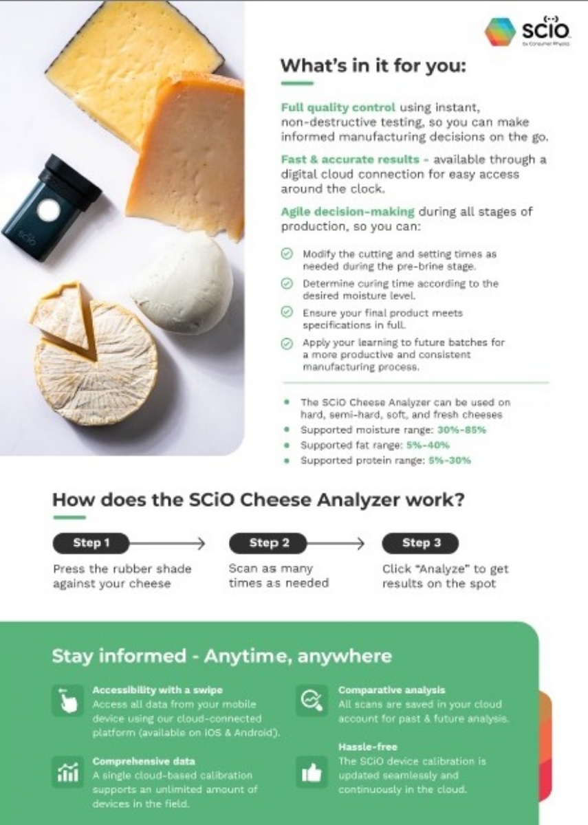 O SCio Cheese é um analisador de queijo com tecnologia NIR. O SCio analisa a umidade, gordura, proteína com resultados rápidos e precisos.